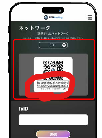 STEP.8 PBRレンディングに戻ってコピーしたTxIDをペーストして送信